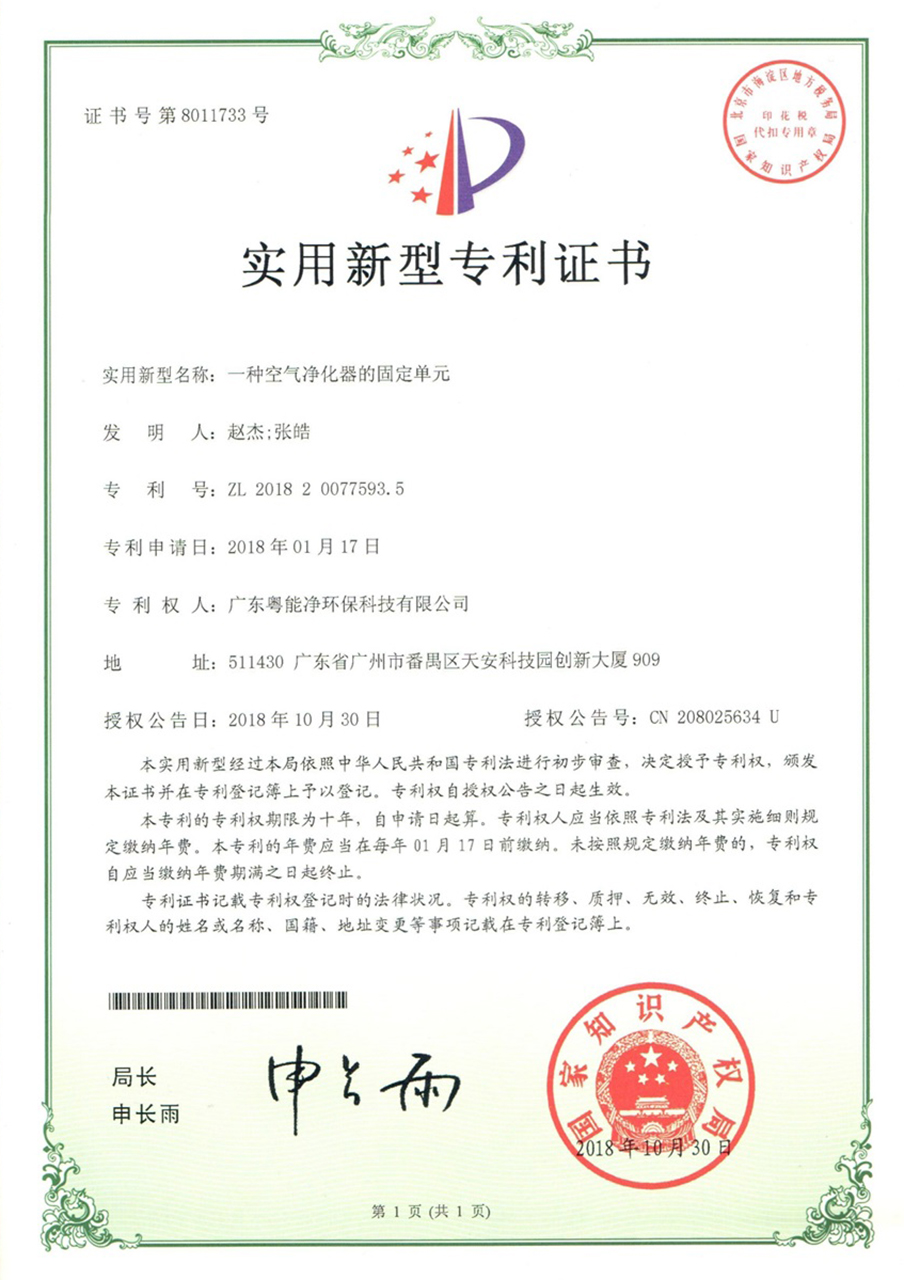一種空氣凈化器的固定單元