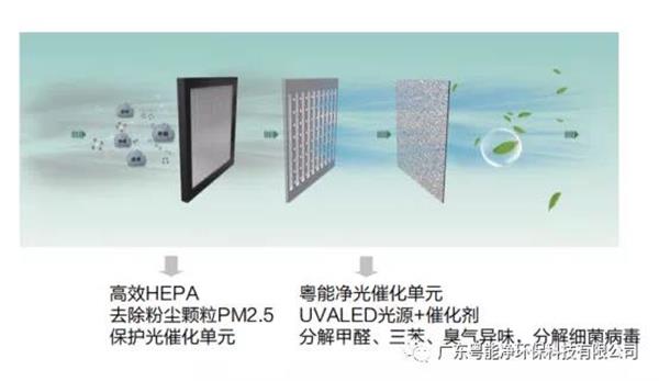 通過這樣一個反應器,我們在實驗室的立方倉中先測試一些甲醛,之后開始測試細菌,后來測試過病毒。在數據充分的基礎上,進行了催化劑跟光源的各種適配。穩(wěn)定以后,把它變成一個標準的光催化單元放到我們的凈化設備中用來檢測凈化器或者消毒機的實際使用水平。