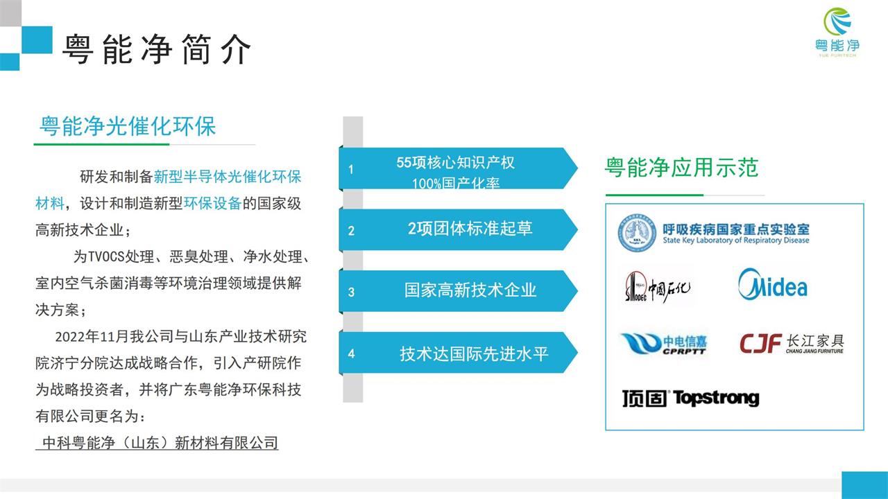 2022年11月我公司與山東產(chǎn)業(yè)技術(shù)研究院濟寧分院達成戰(zhàn)略合作,引入產(chǎn)研院作為戰(zhàn)略投資者,并將原公司:廣東粵能凈環(huán)保科技有限公司更名為: 中科粵能凈(山東)新材料有限公司。